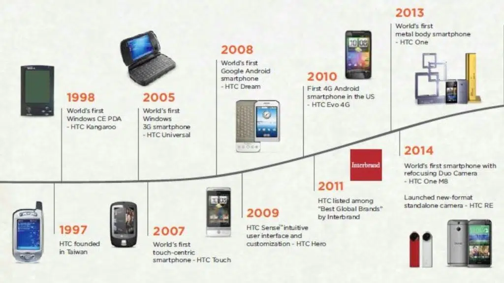 Yüksek teknoloji şirketi olarak bilinen HTC, ilk başta dizüstü bilgisayar üretimi yapmıştı. Ancak daha sonra akıllı telefon üretimine başlamıştı. Hatta HTC, dünyanın ilk dokunmatik ve kablosuz el cihazlarını geliştirmişti. Dahası HTC, ilk Android akıllı telefonlardan birisini, ilk Microsoft destekli akıllı telefonu ve ilk Microsoft 3G telefonu piyasaya sürmüştü.