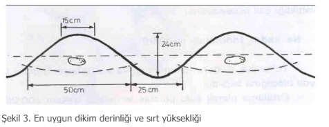Dikim Derinliği: Yüzlek dikimde 2 cm, derin dikimde 5 cm’dir. yüzlek dikimlerin üzerine en az 15 cm, derin dikilenlerin üzerine ise 10 cm toprak konularak sırt yapılmalıdır.