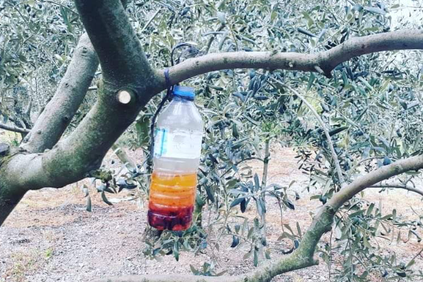 Zirai ilaçlama dışında kendimizin de yapabileceği bir sistem mevcut. Basit ve pratik şekilde kullanabiliriz. Aşağıdaki resimde zeytin dalına asılı pet şişe içerisinde; şişenin 1/3 oranına 18-16 DAP (Diamonyumfosfat) gübresi, 1/3 oranında da su konulur. Zeytin sinekleri için bu karışım cezbedici olduğu için, zeytin sinekleri pet şişede suyun içinde birikmeye başlar. Ara sıra şişeleri yenilemek gerekir.